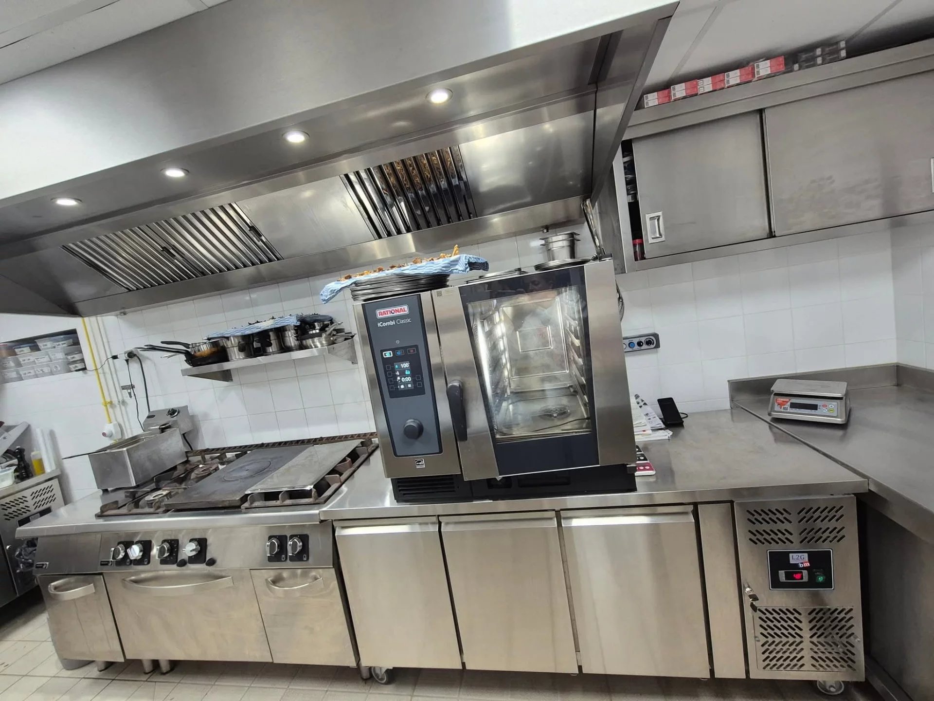 Neu installierte professionelle Küche, vollständig konform mit den geltenden Vorschriften.