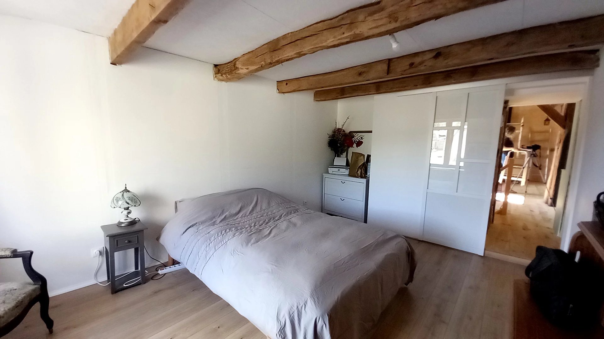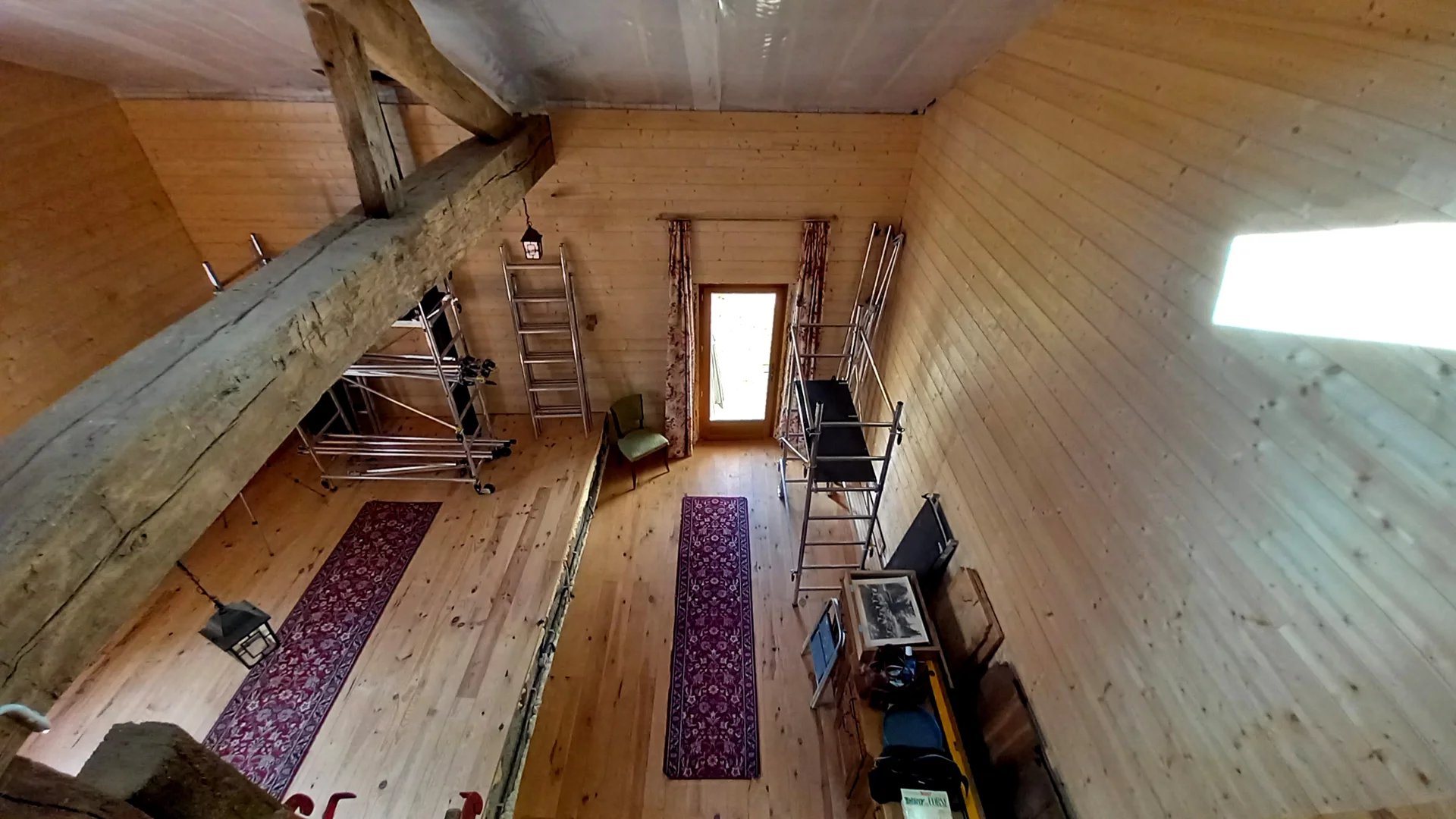 • Une mezzanine spacieuse (36 m²) avec fenêtre de toit Velux — idéale comme espace de travail, atelier ou chambres supplémentaires